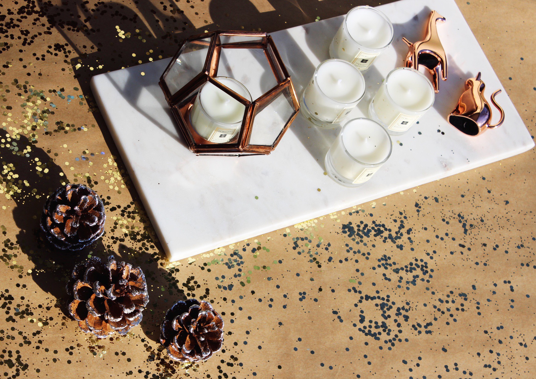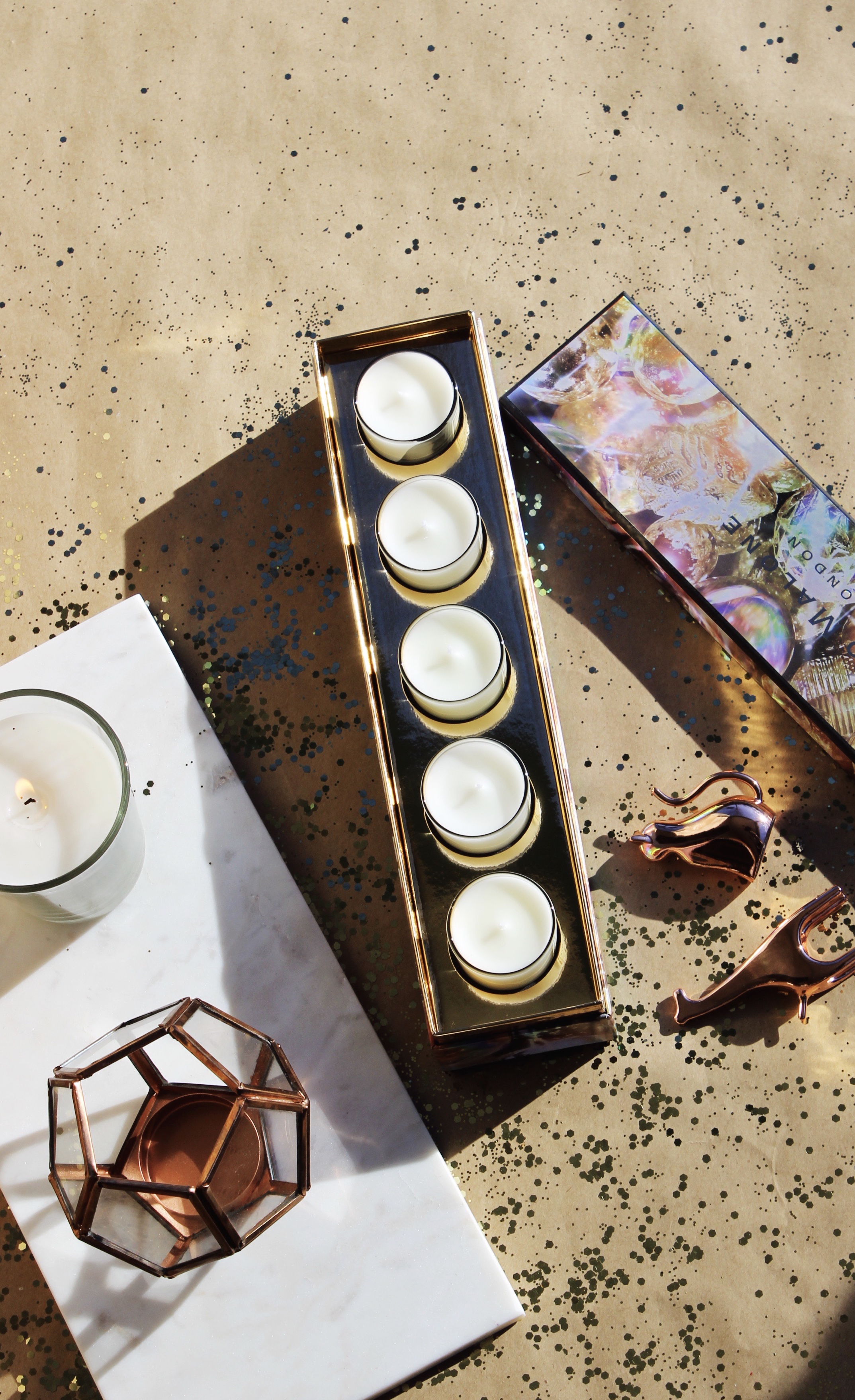 For the things for your home set, I decided to get her some home decor stuff. I started with a felt and oak letter board and a marble tray. I love these letter boards (sorry it didn’t make it in time for the picture) and think it’ll be perfect for her place; the marble tray I thought she would like for her vanity and could even use as a background to take photos of her manicures, or her phone cases, which are some of her most frequented images on her Instagram stories. I also picked up these adorable ring holders, that are little animals. I got the cat, because well she’s obsessed, and the giraffe because she posted a really cute photo of her and her boyfriend with a giraffe over the summer and this made me think of that picture. I also picked up a candle holder, it’s rose gold and perfect to hold the candles you’ll read about below!