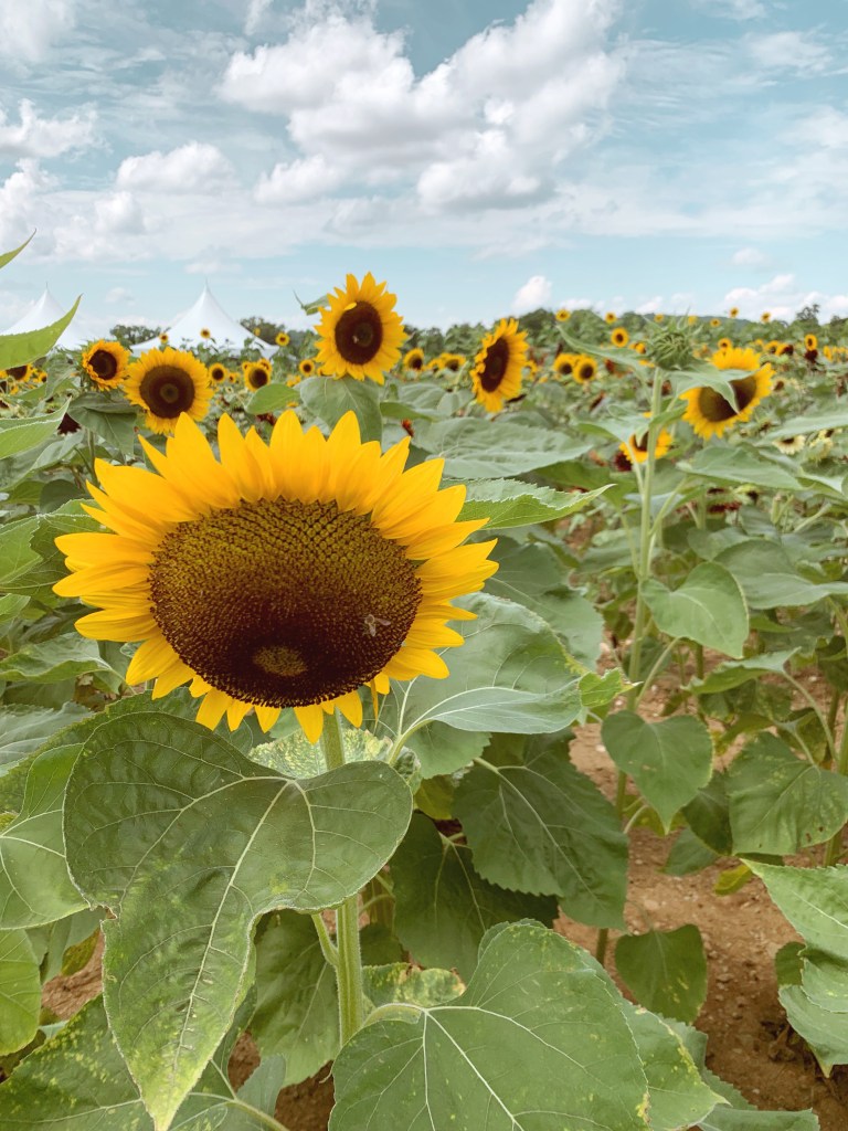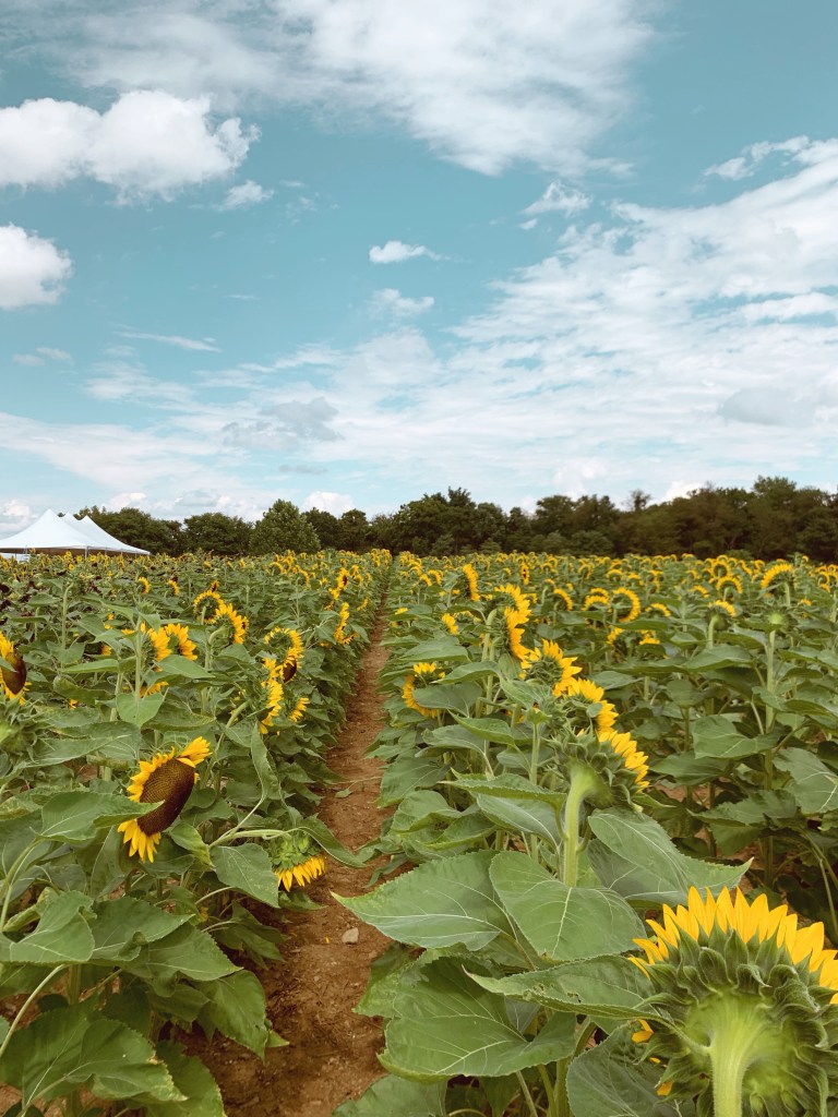 First things first, Darren and I went to a Sunflower Festival this summer, which was so fun. It was really really really hot that day, but we went to Barton Orchards, grabbed a cider, listened to live music, and then explored what felt like a never ending field of sunshine and sunflowers. I just love anything that gives you that childlike sense of wonder that makes you stop and think how lucky you are that all of this even exists. That’s how I felt, standing in the sun, on a perfect summer day, feeling like the whole world must be covered in sunflowers, as I couldn’t see the end of the patch. Since it was so warm that weekend, the orchard provided little water bags to make sure your sunflowers made it home and both of ours did – they’re the biggest sunflowers I’ve ever seen!