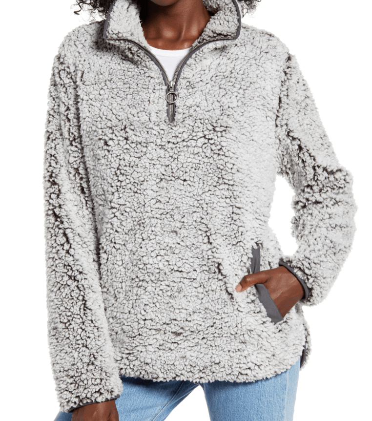 This is the comfiest piece of loungewear/outerwear I’ve ever owned. I love to wear it around the apartment when I’m cold, or throw it on if I need something light on the way to the gym – its got a HUGE pocket and is so fuzzy and so soft – WARNING – the dryer kinda takes away some of the cuddliness, but I still really like it.